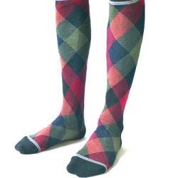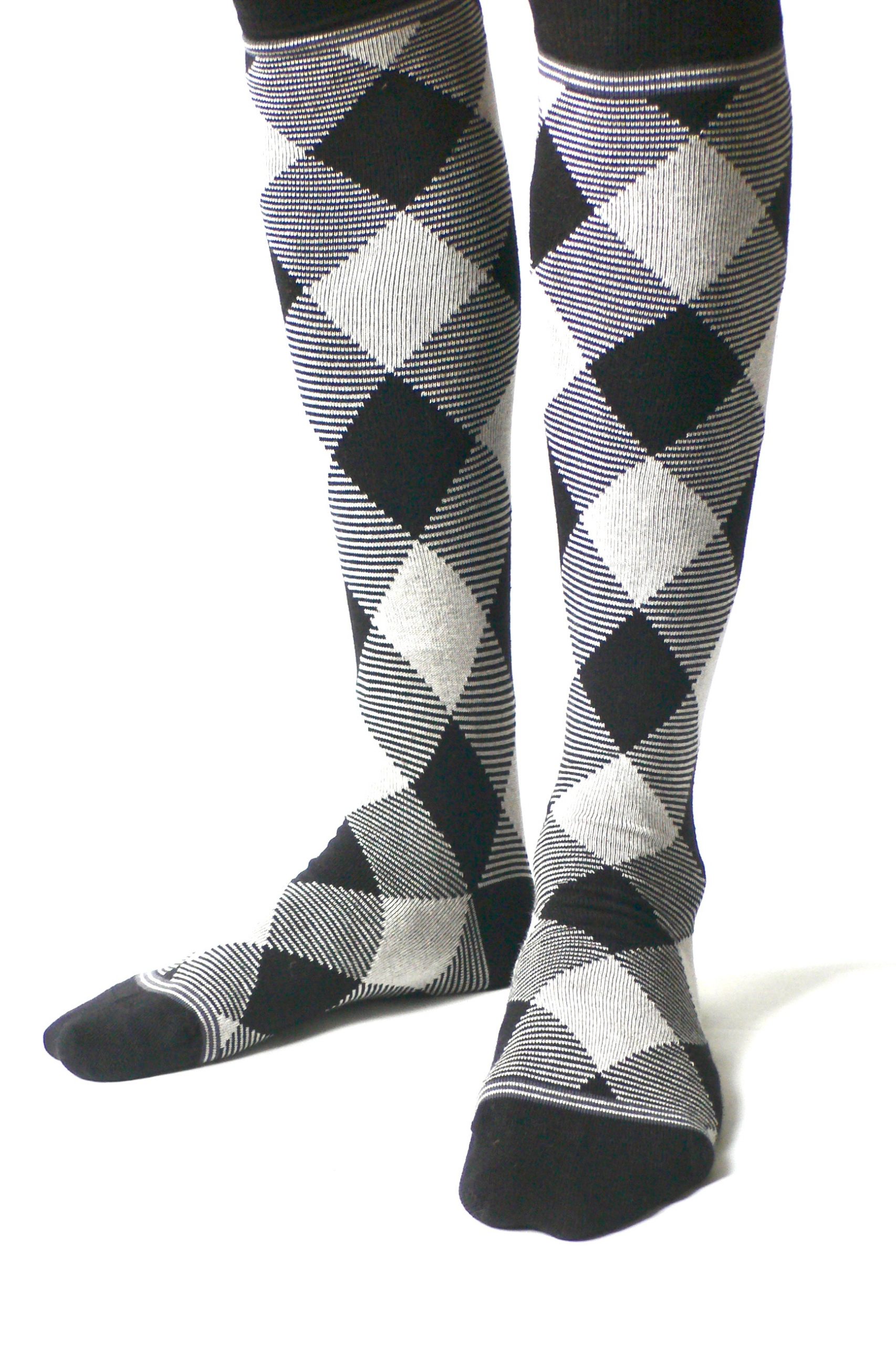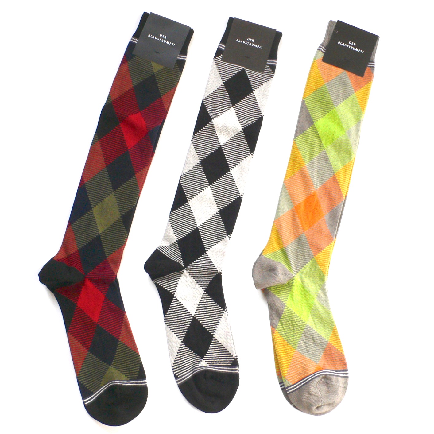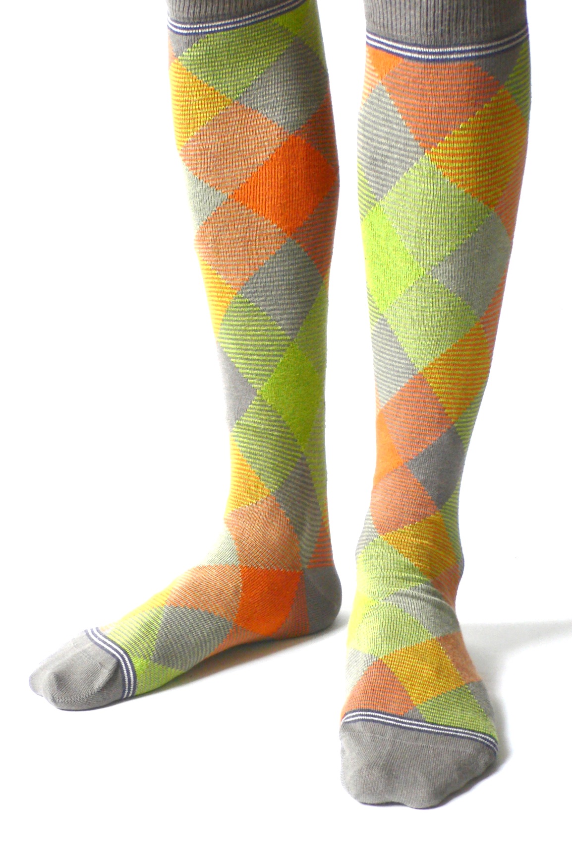 Dies ist die LANGE Kniestrumpf-Version der Basler Design-Socken «Bajazzo»; handgekettelt in Norditalien. Langlebigkeit garantiert!