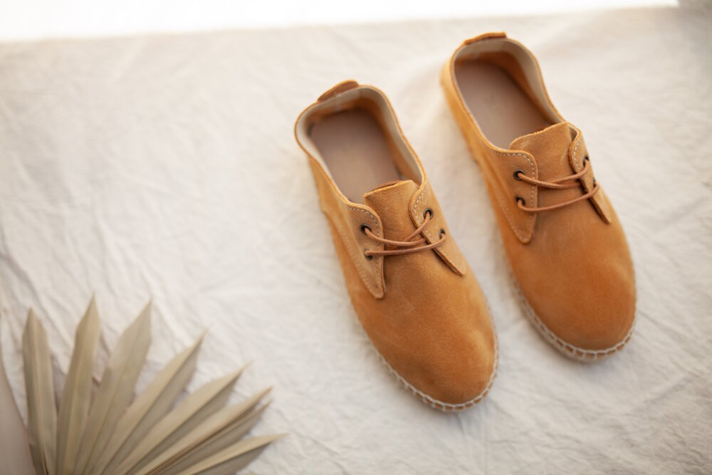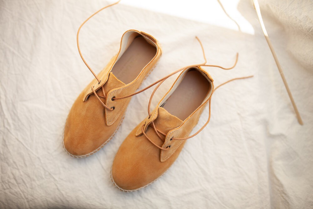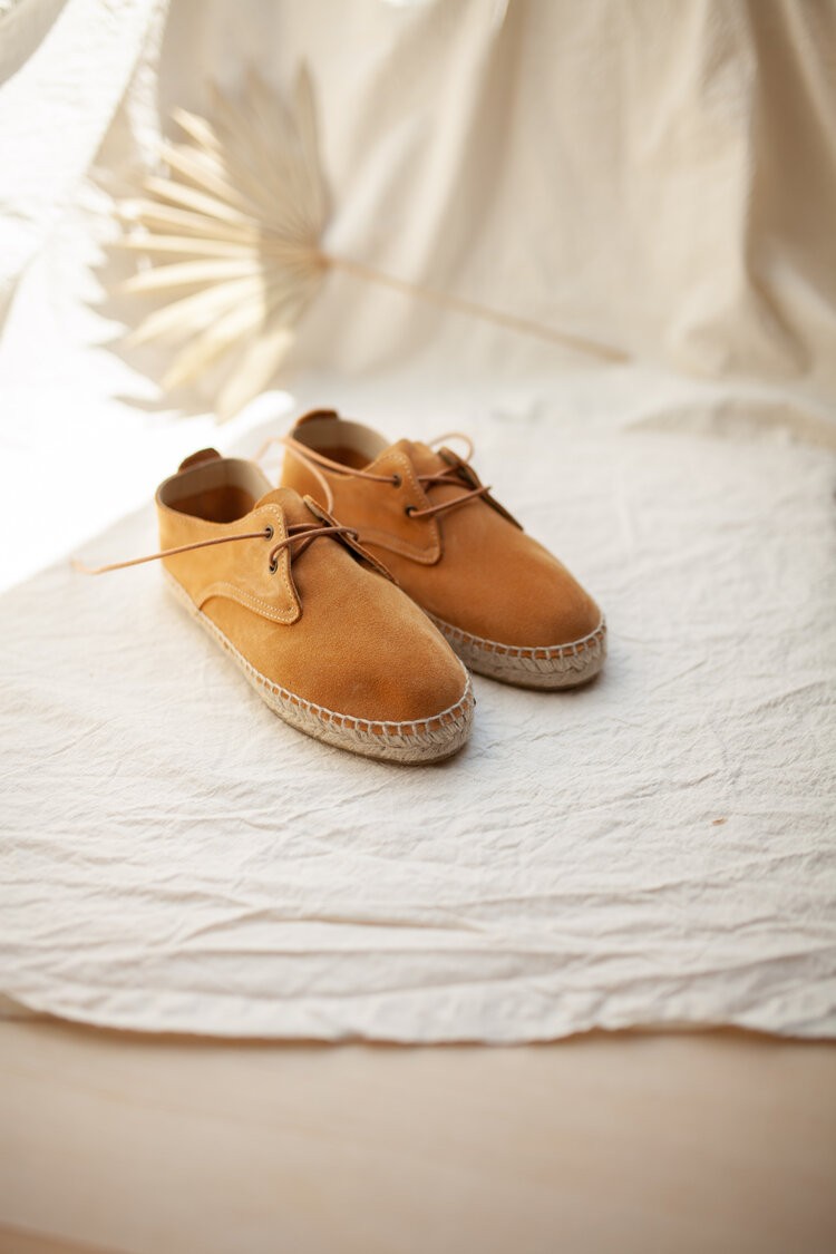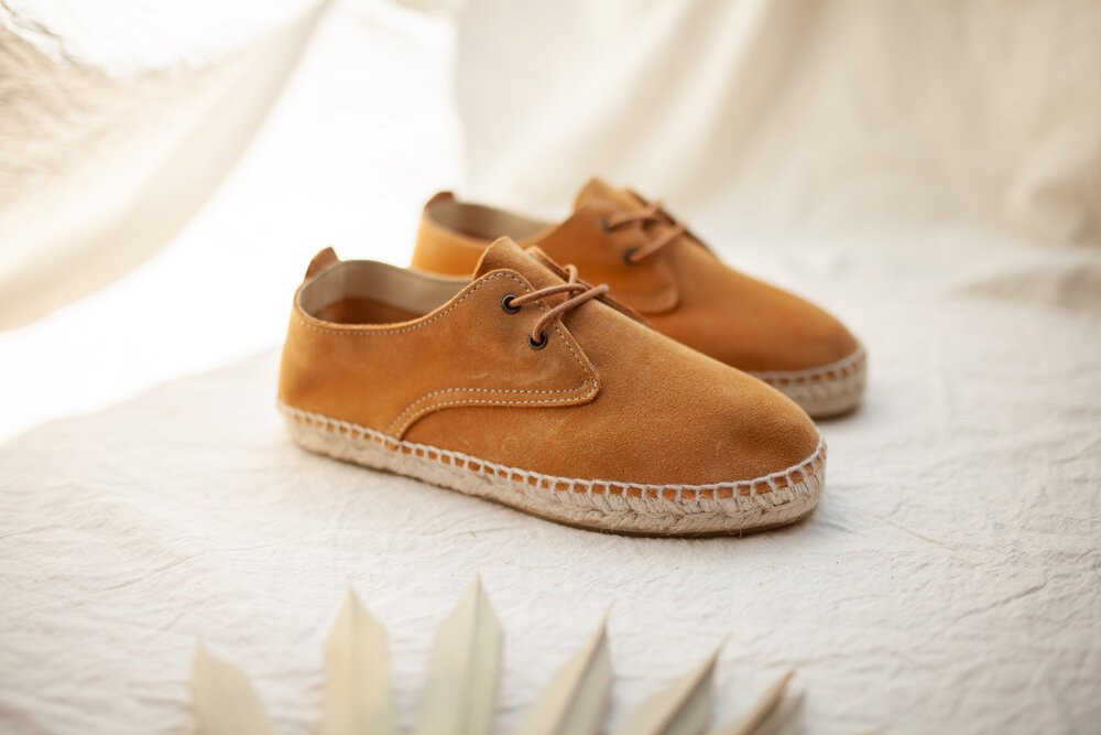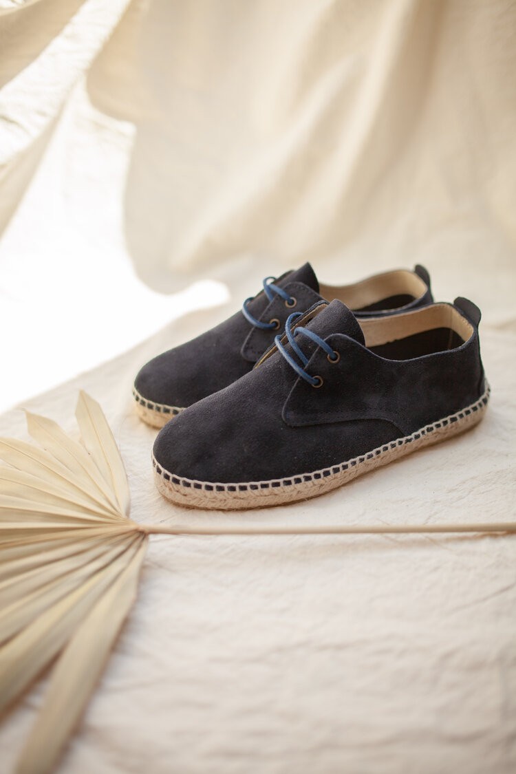 Obermaterial: Wildleder zertifiziert von Leather Working Group, Innensohle: Leder, Außensohle: 100% natürliche Jutefasern, Schnürsenkel: Gewachste Baumwolle