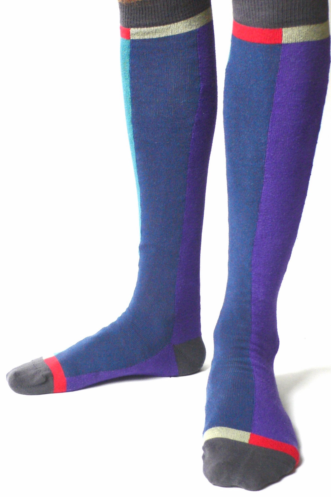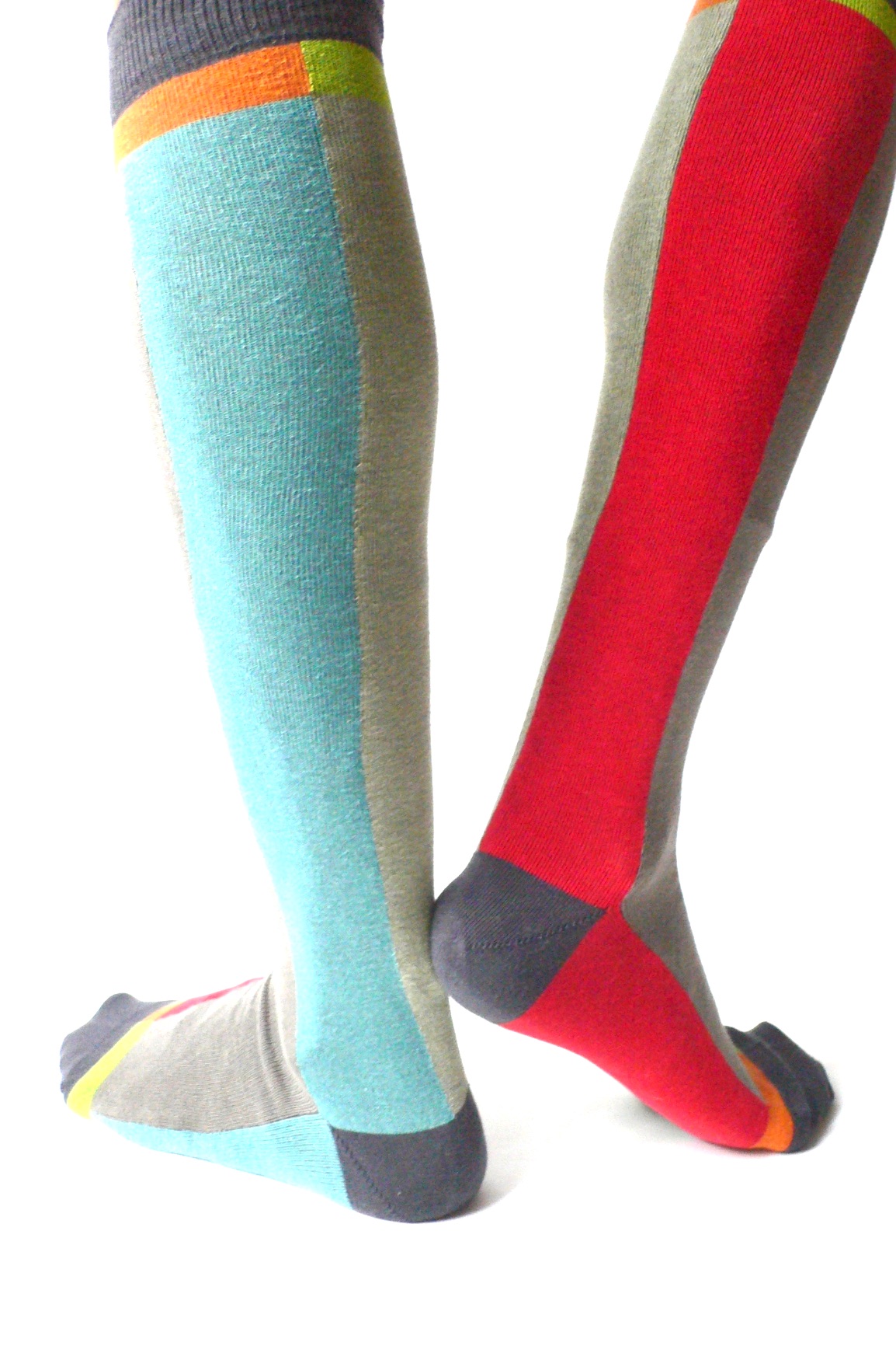 Wie der Name schon sagt: etwas verrückt und lustig sind diese neuen Kniesocken. Beide Füsse sind unterschiedlich farbig und trotzdem passen sie irgendwie zusammen… Fällt bestimmt auf und bringt etwas Farbe in die dunkleren Tage…