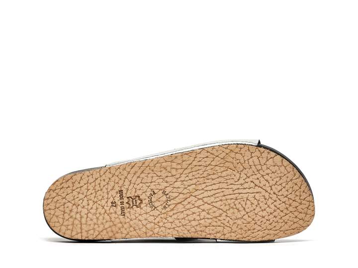 Dieses Modell wird vor allem für seine essentielle Linie geschätzt. Es kommt mit einer weichen, eleganten Leder-Innensohle. Das Obermaterial besteht aus strapazierfähigem und zartem, silberlaminiertem Rindsleder.
