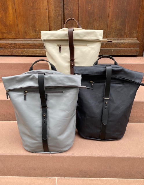NEU im Sortiment: der trendige und superleichte Rucksack aus organischer, gewachster Baumwolle. Die Details sind aus echtem Leder (kein Chrom). Das Material ist wasserabweisend und kann von Hand gewaschen werden.