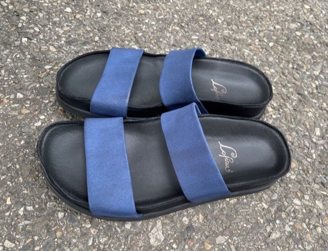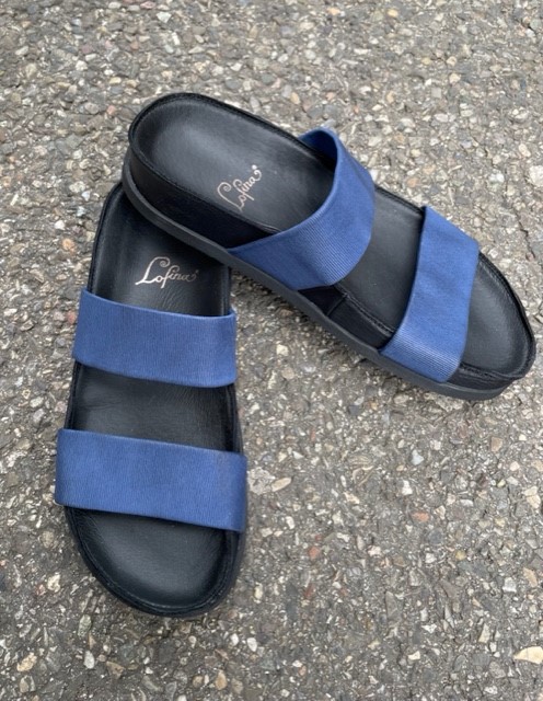 Die neuen Lofina Sommersandalen sind da! Mit dieser schönen und bequemen Sandale durch den Sommer schlendern. Was gibt es Schöneres? Nicht nur stylisch, sondern auch super bequem durch das Fussbett und die elastischen blauen Gummibänder.