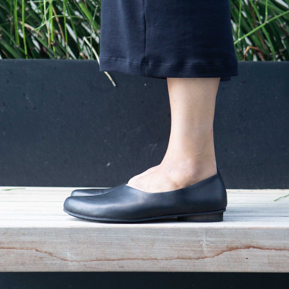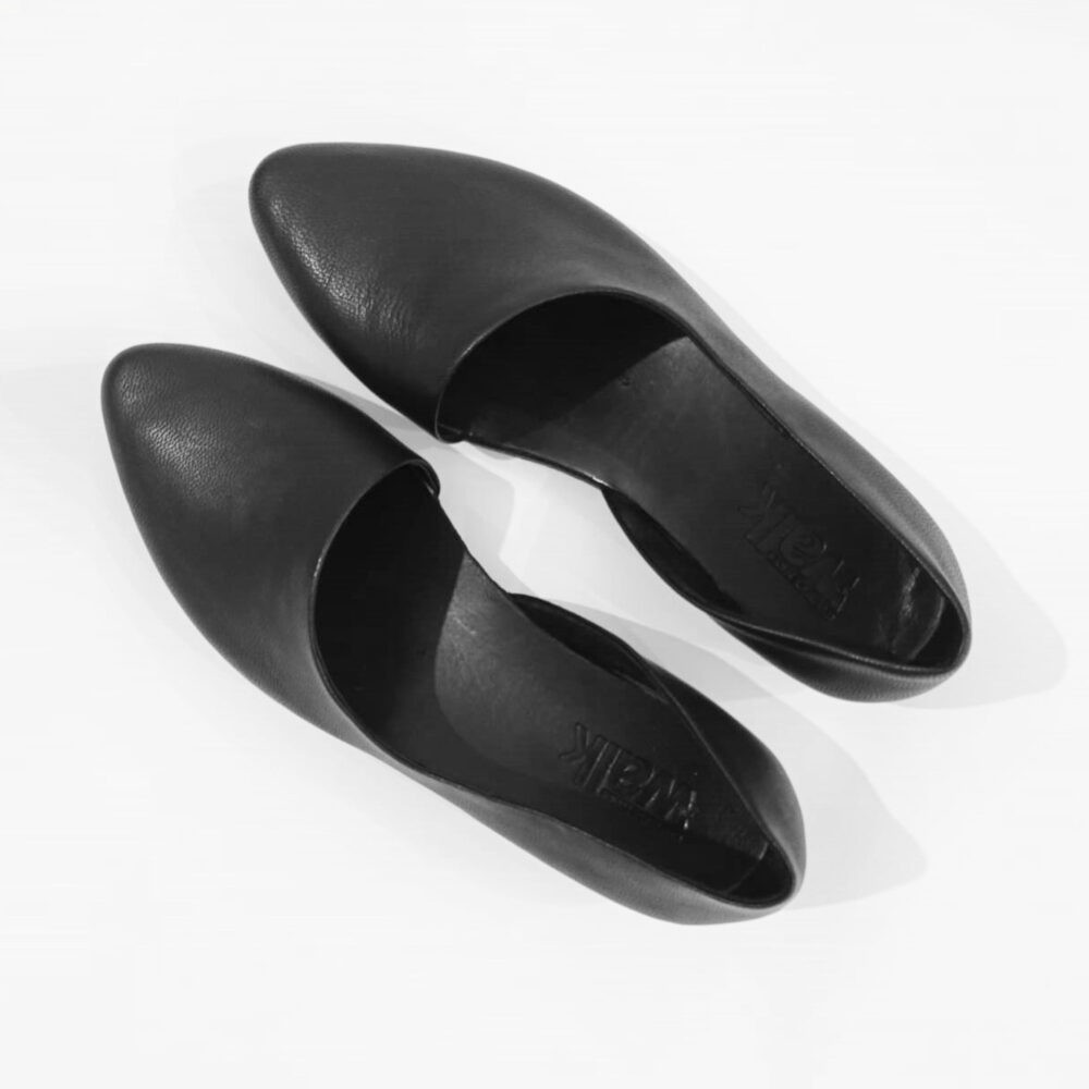 Klassische Leder-Flats aus weichem, strukturiertem Zigarren-Rind-Leder mit spitzer Zehen. Die Schuhe sind so weich, dass man sie nicht von den Füßen nehmen möchte. Absatz ca. 1,5 cm. Handgefertigt in Tel Aviv.